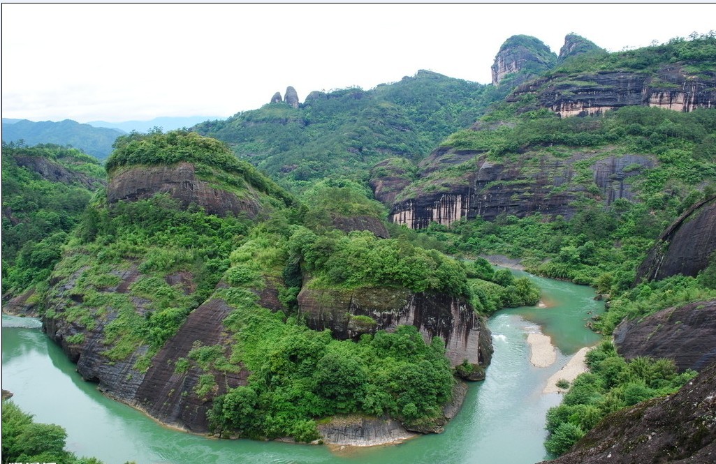九曲溪風景區(qū)面積約8.5平方公里,發(fā)源于桐木關西北角、三港國家自然保護區(qū)內,全長60公里。九曲溪位于福建省武夷山峰巖幽谷之中。因武夷山有三十六峰,九十九巖。峰巖交錯,溪流縱橫,九曲溪貫穿其中,蜿蜒十五華里。又因它有三彎九曲之勝,故名為九曲溪。由于九曲溪彎彎曲曲,深深地切割著武夷群峰,形成九曲清流繞青峰的美妙景觀,乘坐竹筏泛溪觀賞山景,成為武夷山游覽的一大特色。1962年郭沫若曾作《游武夷山泛舟九曲》詩曰:九曲清流繞武夷,棹歌首唱自朱熹;幽蘭生谷香生徑,方竹滿山綠滿溪。六六三三疑道語,崖崖壑壑競仙姿;凌波輕筏觴飛羽,不會題詩也會題。